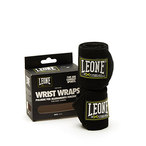 Fasce da polso Leone 1947 AB706 in cotone elasticizzato e label gommata, con strap in velcro per il fissaggio al polso ed occhiello per il fissaggio al pollice della mano.